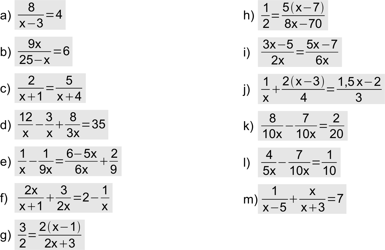 Lösen Sie folgende Gleichungen.