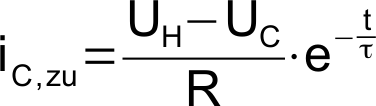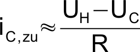 Wir nehmen nun an, dass der Kondensator bereits vorgeladen ist und die Spannung am Kondensator UC beträgt. Dadurch ergibt sich folgener Ladestrom: