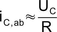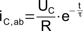 Wir nehmen an, dass die Spannung am Kondensator zu Beginn des Entladevorganges UC beträgt. Dadurch ergibt sich folgener Entladestrom: