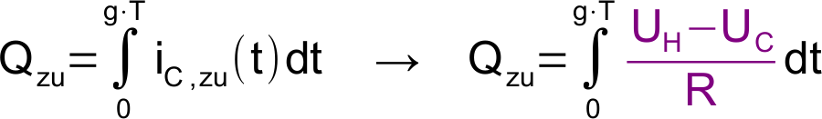 Die zugeflossene Ladung ergibt sich aus dem Integral des zufließenden Stromes durch den Widerstand R.