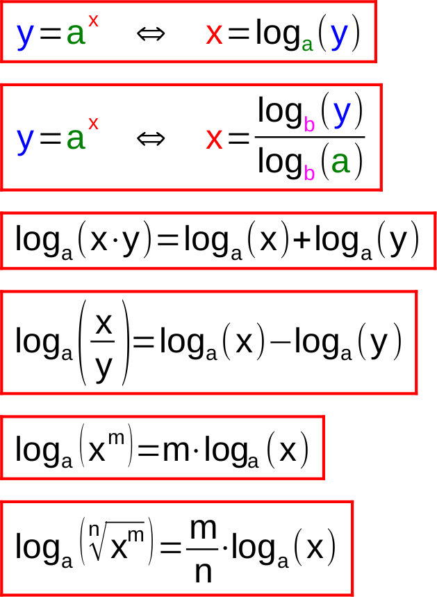 Aus den Potenzgesetzen folgen auch die Rechenregeln für den Umgang mit Logarithmen. Diese werden auch als Logarithmus-Regeln oder Logarithmengesetze bezeichnet.